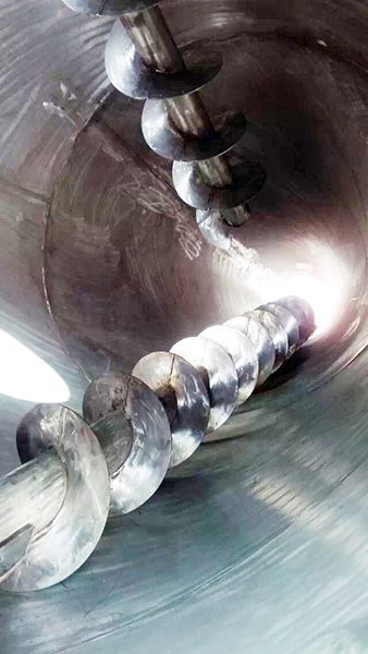 4、混合过程温和,物料不会产生压馈、磨损、过热现象。